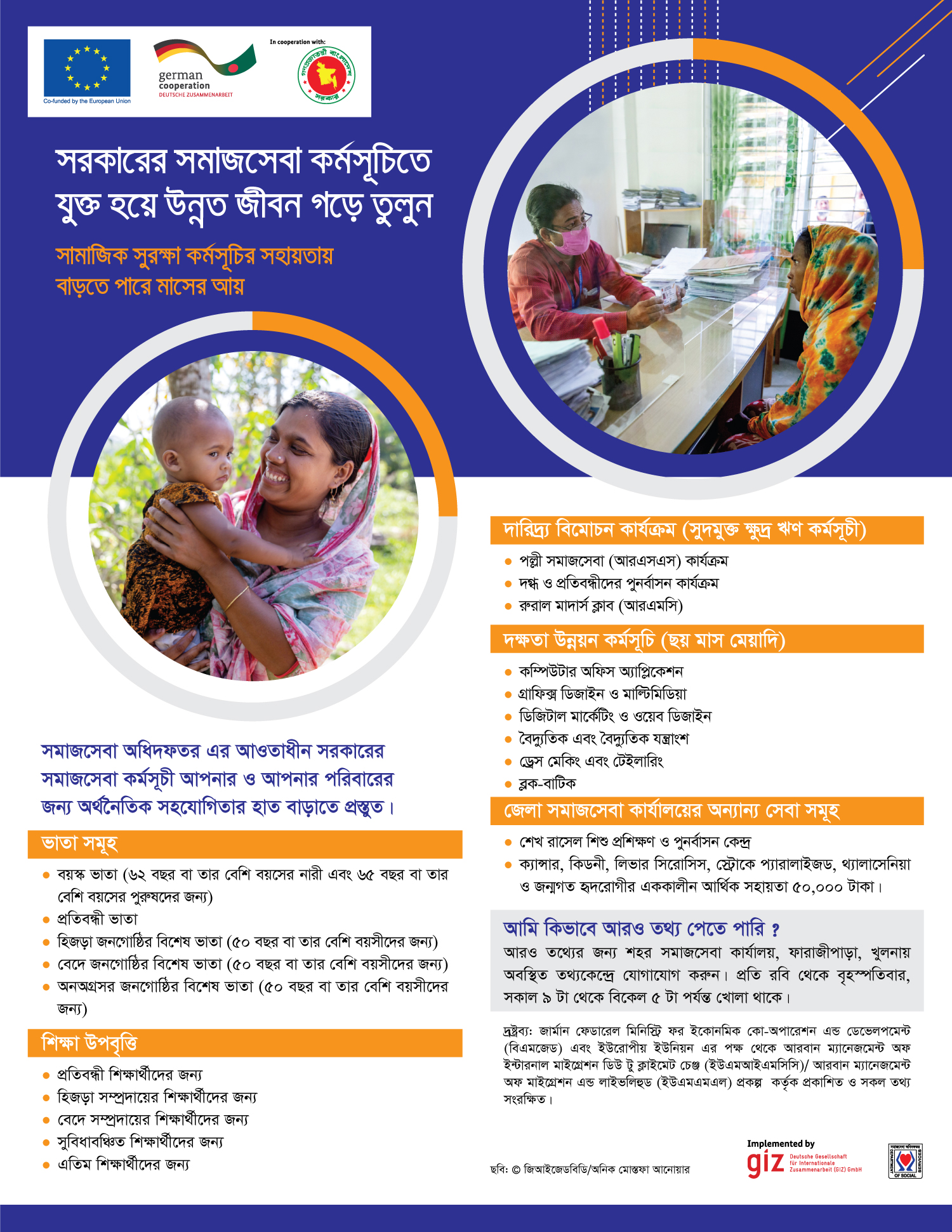 | ০৫ | বেদে ও অনগ্রসর জনগোষ্ঠীর জন্য বিশেষ ভাতা | ৬৫৫ জন | ৩৯,৩০,০০০/- | ||